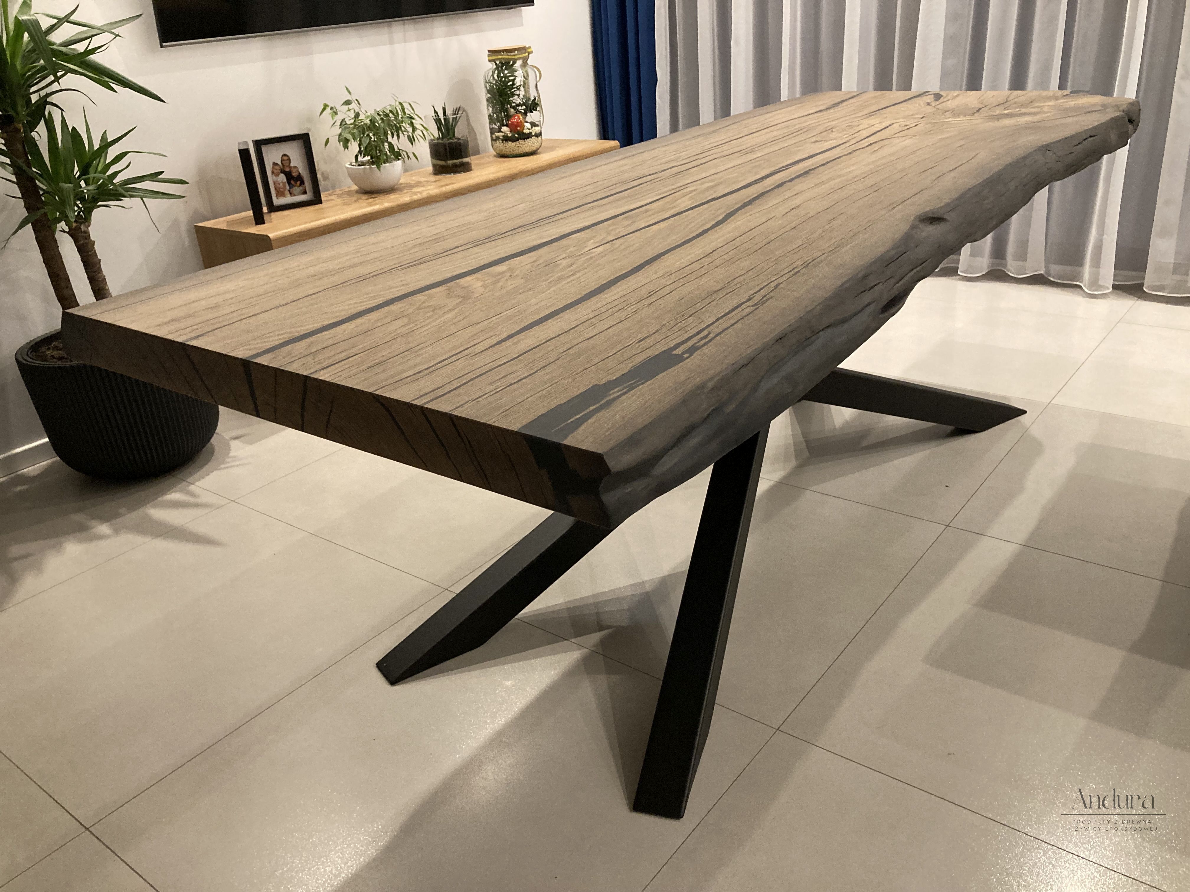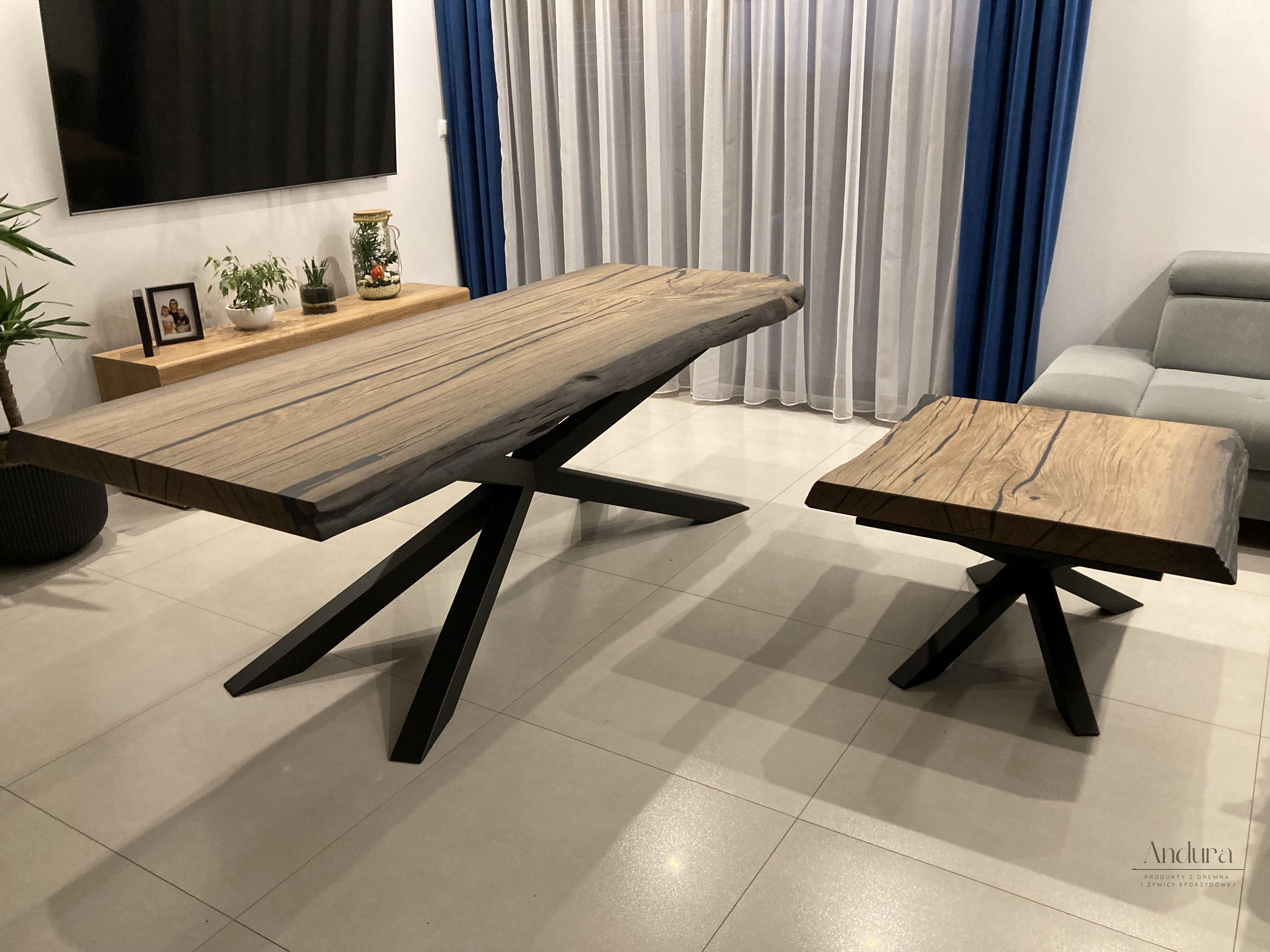 Odkryj wyjątkowe połączenie natury, historii i nowoczesnego designu. Nasz stół oraz stolik kawowy z czarnego dębu powstały z drewna, które spoczywało pod wodą przez ponad 1250 lat. Ten niezwykły materiał, nasycony głęboką, ciemną barwą i szlachetną strukturą, jest świadkiem minionych wieków – dziś staje się sercem współczesnych wnętrz.